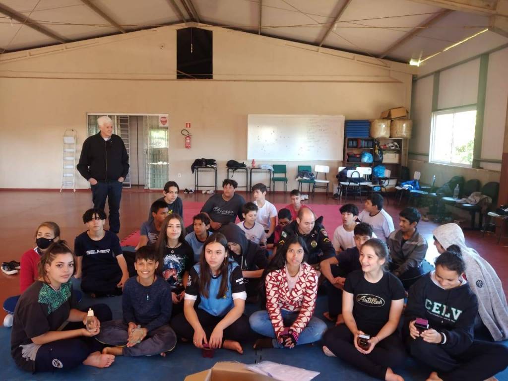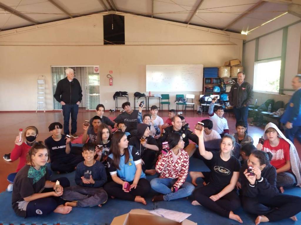 NA DATA DO DIA 19/08/2022 O ROTARY CLUBE DE DOIS VIZNHOS, REALIZOU ENTREGA DE PERFUMES A CERCA DE CEM (100) JOVENS PERTENCENTES A GUARDA MIRIM DE DOIS VIZINHOS. OBJETOS ESTES QUE FORAM RECEBIDOS POR INTERMÉDIO DE UM PROJETO APRESENTADO AO FÓRUM DA COMARCA DE DOIS VIZINHOS, O QUAL VISA CONTEMPLAR INÚMERAS ENTIDADES LOCAIS.