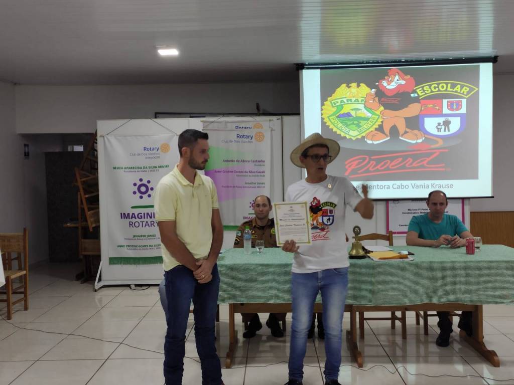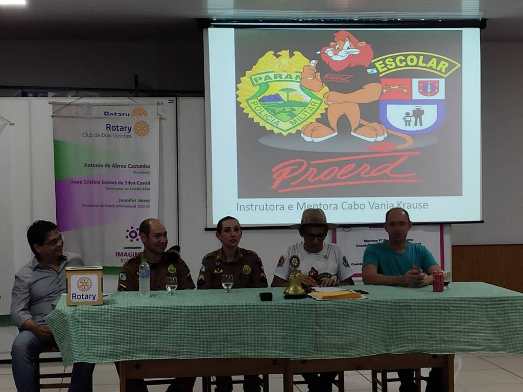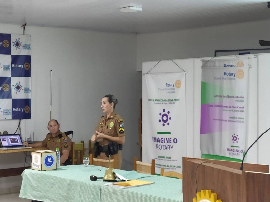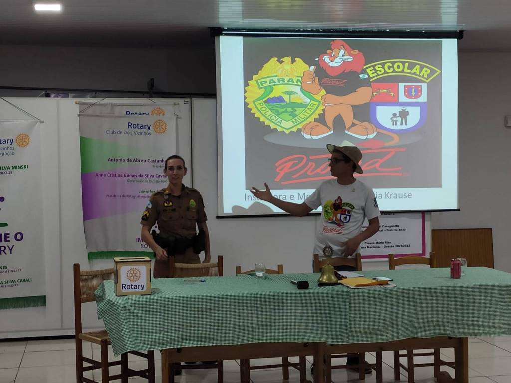 DIA 04/05/2023 A CABO VÃNIA DA POLÍCIA MILITAR, A QUAL NOS BRINDOU COM UMA IMPORTANTE PALESTRA COM O TEMA PROERD E SUA ATUAÇÃO NÃO APENAS NA CIDADE DE DOIS VIZINHOS, MAS SIM NA REGIÃO, SUA FORMA DE ATUAÇÃO E POLICIAMENTO. O ROTARY CLUBE DOIS VIZINHOS AGRADECE A POLICIAL MILITAR POR COLABORAR ENRIQUECENDO NOSSO PÚBLICO INTERNO COM MAIS CONHECIMENTO, FOI UMA HONRA A TODOS NÓS. CONTE CONOSCO EM SUAS AÇÕES.