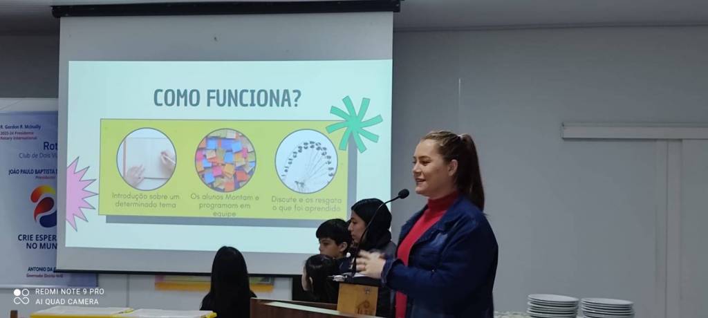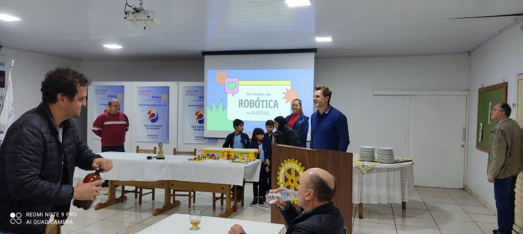 Na noite de ontem a Sudotec apresentou um pouco do trabalho e resultados que seus alunos vem apresentando com a parceria firmada com o Rotary Club de Dois Vizinhos. Para nosso clube é uma alegria ver os desafios propostos a estas crianças e acompanhar suas evoluções nos motivam ainda mais em persistir em mais projetos e ações em nossa comunidade. Na oportunidade ainda fora entrega algumas notinhas arrecadas no comércio em prol da nossa CASA DA PAZ, as quais foram entregues em mãos do senhor Sidinei Cattani.