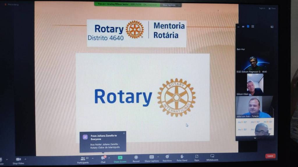No dia 15/03/24 ocorreu a Mentoria Rotaria Rotary Amizade e Serviço, Cascavel/PR, a qual ocorrera de maneira online, onde o Companheiro Kaiser participara agregando conhecimento aos demais companheiros de clube.