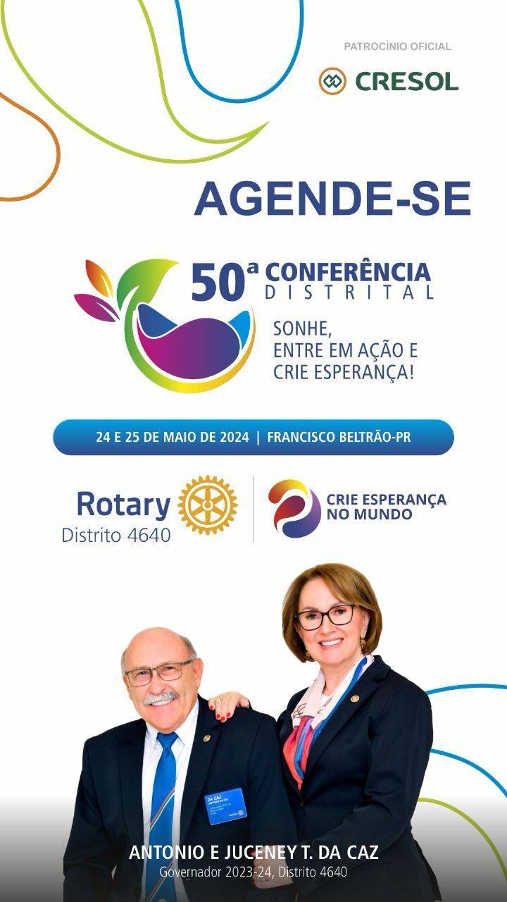 Nos dias 24 e 25 de maio de 2024 ocorrerá a Assembleia Distrital do distrito 4640. Venha participar conosco.