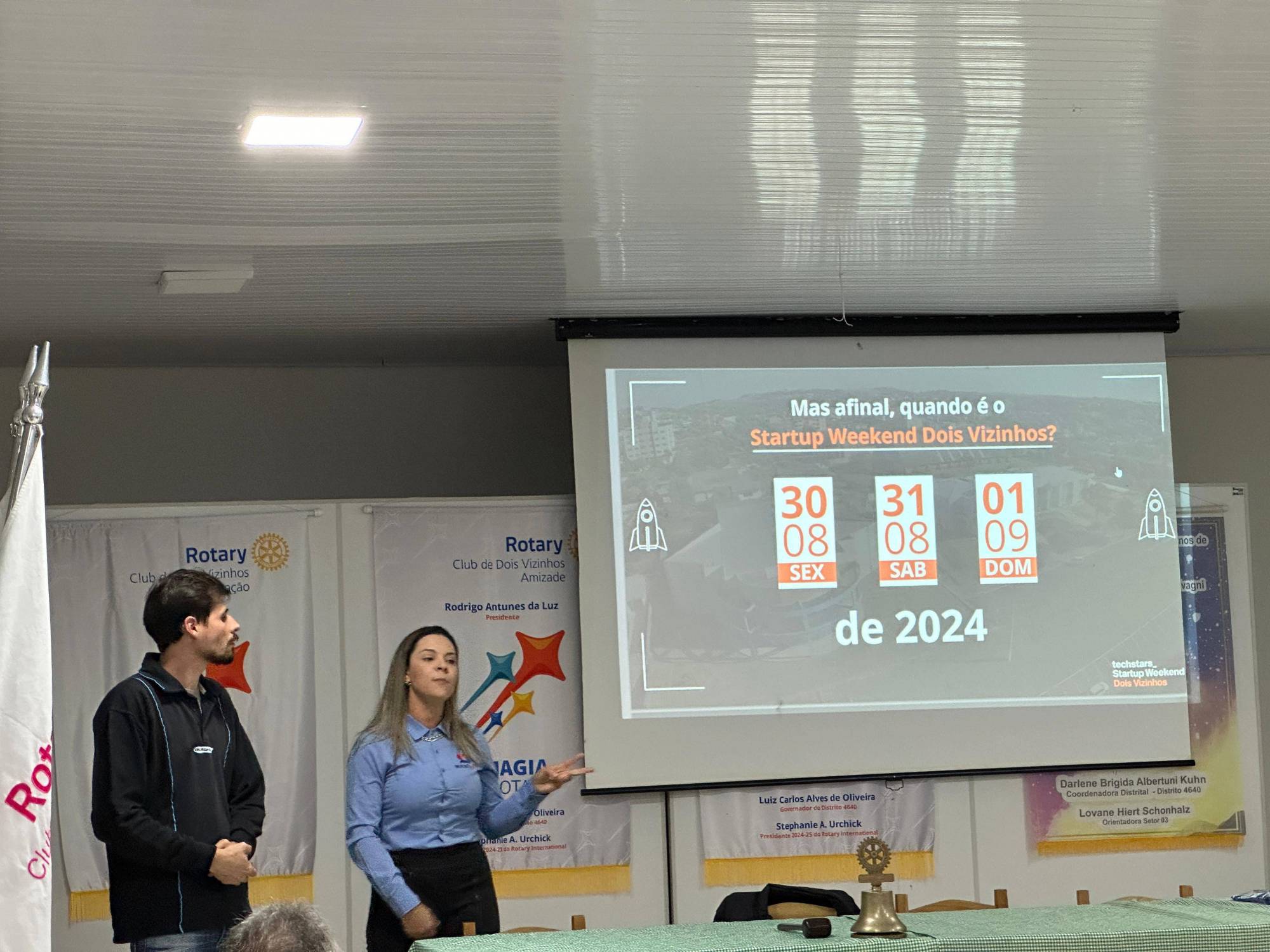 Na última quinta-feira, dia 18 de julho, o Rotary Club de Dois Vizinhos recebeu a visita especial dos representantes do Startup Weekend, um evento renomado internacionalmente por fomentar startups e ideias inovadoras, estiveram presentes para apresentar detalhes sobre a próxima edição do evento, marcada para os dias 30, 31 de agosto e 01 de setembro.