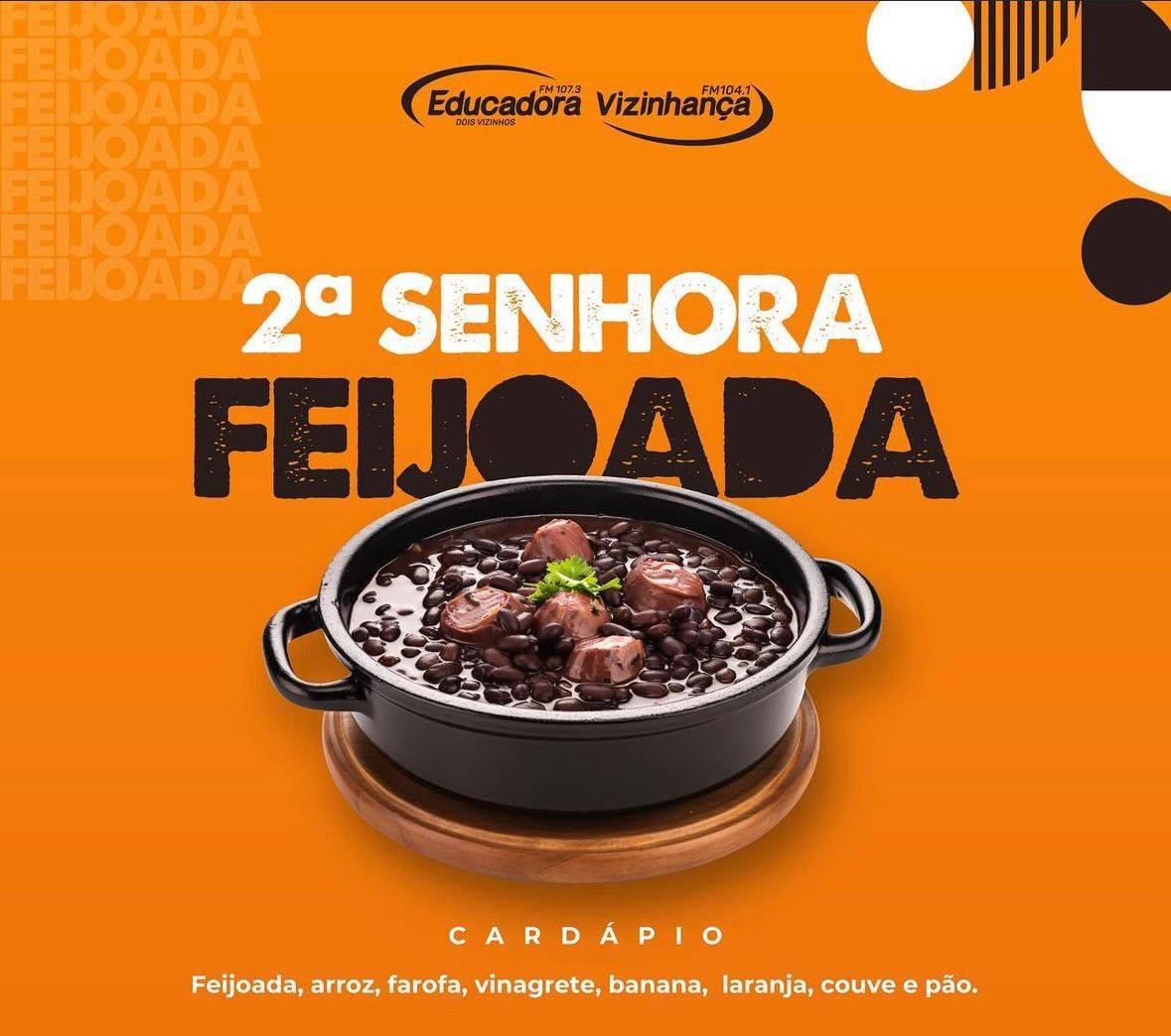As rádios Educadora e Vizi FM de Dois Vizinhos promovem a 2ª Senhora Feijoada no dia 21 de setembro, a partir das 11h30, no Centro de Eventos Lago Dourado. o lucro do evento será destinado a construção da sede do Banco Ortopédico dos clubes de Rotary de Dois Vizinhos.