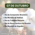 O dia 7 de outubro é o Dia Mundial do Algodão. Em 2002, o Brasil contestou na Organização Mundial do Comércio subsídios que o governo dos Estados Unidos concedia a seus produtores de algodão. Onde ainda nesta data se comemora o dia Mundial do Habitat, Dia do Trabalho Decente e Dia da Nossa Senhora do Rosário.