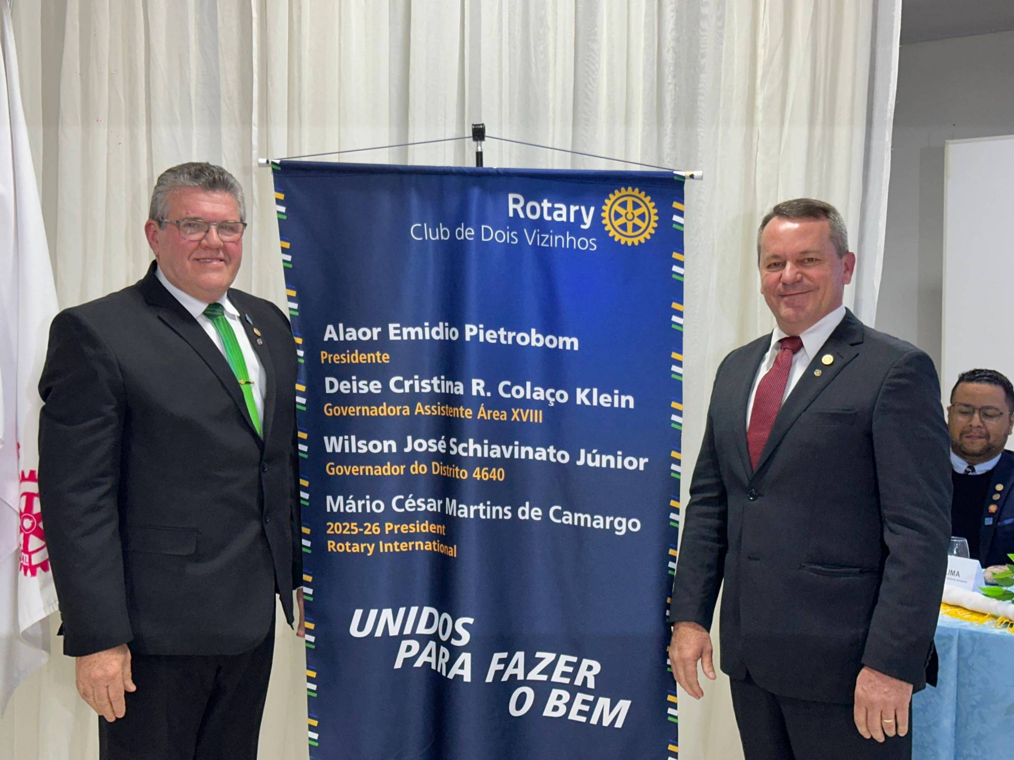 Em seu pronunciamento de posse, Alaor Pietrobom reforçou o compromisso de seguir promovendo ações sociais, fortalecendo os laços de companheirismo e ampliando o impacto positivo do Rotary em Dois Vizinhos. “Tenho 25 anos de Rotary Dois Vizinhos e sempre posterguei a ideia de ser presidente em virtude dos meus compromissos profissionais. Agora chegou a hora e estou motivado para seguir com esse excelente trabalho que o Beal vinha fazendo. Temos um clube muito unido, com grandes líderes e, com o apoio de todos, tenho certeza que será um grande mandato”, afirmou.