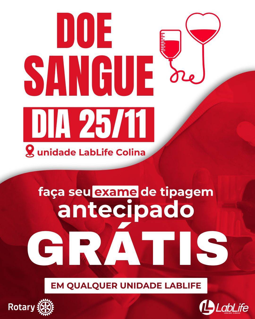 O projeto “Doe Sangue e Salve Vidas” tem como foco a arrecadação de sangue com fator RH negativo — especialmente O-, A-, B- e AB-, tipos mais raros e essenciais em situações de emergência. Para participar, o voluntário deve comparecer previamente a qualquer unidade do Lab Life, realizar gratuitamente seu cadastro e verificar sua tipagem sanguínea.