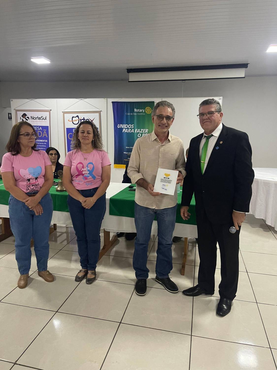 Rotary Club de Dois Vizinhos presta homenagem a Beto Pin por doação de equipamentos destinados à AMEHDV-RCC