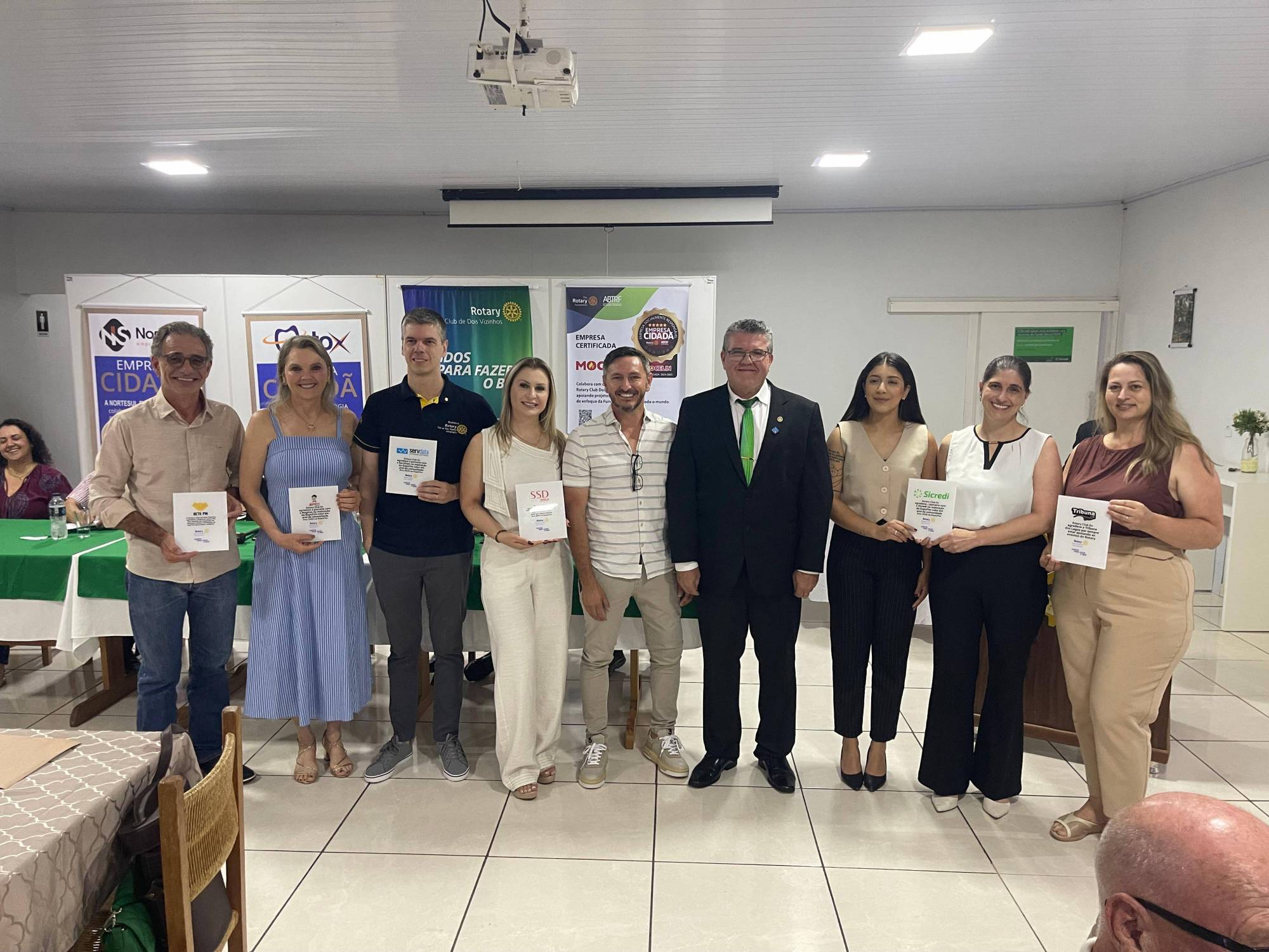 O Rotary Club de Dois Vizinhos realizou, nesta semana, a entrega oficial de reconhecimentos às empresas parceiras e patrocinadoras da 53ª Feira de Mudas e 3ª Expoflor, evento considerado um dos mais bem-sucedidos da história da instituição. A homenagem reforça a importância do setor privado no fortalecimento das ações solidárias promovidas pelo Rotary no município.